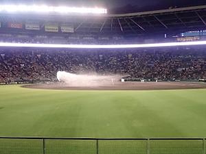今日も阪神園芸さんのグランド整備の水撒きがビュ〜ティホですっ✨